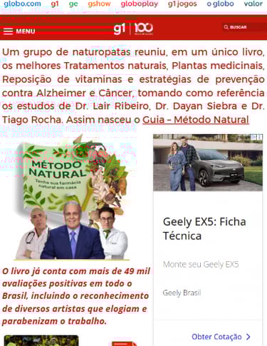 No Guia Método Natural, reunimos para você, em um único livro, os tratamentos e receitas naturais mais eficazes, de acordo com os maiores especialistas em saúde natural do Brasil, como Dr. Lair Ribeiro, Dr. Tiago Rocha e Dr. Dayan Siebra.